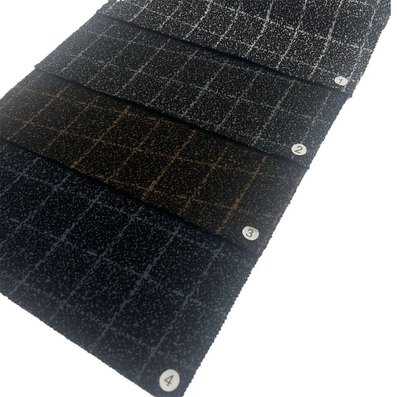 Această țesătură, articolul 182808-1, este un material textil tricotat conceput pentru fabricarea blazerelor. Este construit dintr-un amestec de fibre de 65% poliester, 27% nailon, 6% acrilic și 2% lână, cu o masă pe unitate de suprafață de 820 g/m. Suprafața integrează un model combinat de carouri și puncte format în timpul procesului de tricotare. Această compoziție specifică de fibre creează caracteristici complementare: poliesterul oferă stabilitate structurală, nailonul sporește durabilitatea, acrilul contribuie la loft, iar lâna influențează senzația de mână a țesăturii. Greutatea substanțială și construcția din tricot contribuie la proprietățile de drapaj și izolație ale țesăturii, făcându-l aplicabil pentru articole de îmbrăcăminte structurate, cum ar fi sacourile.