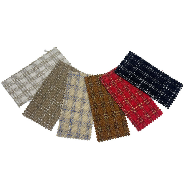 Această țesătură, desemnată ca articolul 3764, este un material textil tweed țesut compus 100% din alte fibre. Cu o masă pe unitate de suprafață de 560 g/m, prezintă o construcție cu greutate medie spre grea. Suprafața combină un model de carouri cu o structură de chenille care a suferit un proces de periere. Această tehnică de finisare ridică fibrele din firele de chenilie, creând o textură de suprafață moale. Designul cecului este format prin interacțiunea firelor colorate în procesul de țesut, menținând precizia geometrică. Aceste tehnici de fabricație au ca rezultat o țesătură cu definiție vizuală a modelului și o calitate tactilă distinctivă. Acest tweed țesut este aplicabil pentru îmbrăcămintea pentru femei unde sunt necesare interesul la suprafață și integritatea structurală.