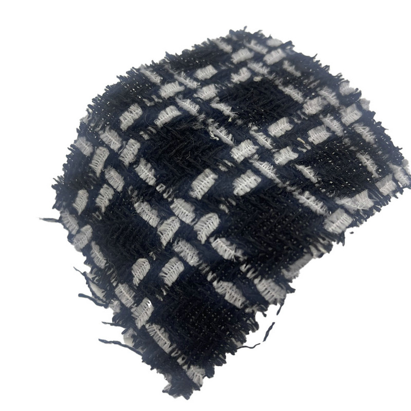 Această țesătură, desemnată ca articolul 23545, este o țesătură tweed, compusă din 39% poliester, 36% lână și 25% bumbac. Cu o masă pe unitate de suprafață de 255 gsm, prezintă o construcție ușoară. Țesătura prezintă un model în carouri negre creat prin procesul de țesut, formând o grilă structurată pe suprafață. Amestecul de poliester, lână și bumbac combină stabilitatea dimensională a fibrelor sintetice cu gestionarea naturală a umidității fibrelor celulozice și proteice. Această compoziție are ca rezultat o țesătură cu durabilitate și respirabilitate echilibrate. Aceste specificații tehnice fac ca acest tweed țesut să fie aplicabil pentru diverse aplicații de îmbrăcăminte în care sunt necesare definirea modelului și confortul la purtare.